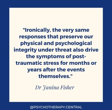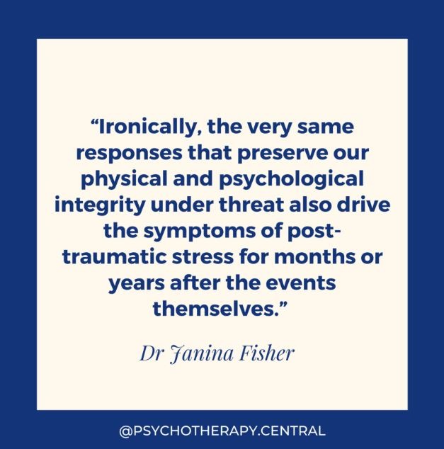 "Một điều buồn cười là, chính những phản ứng đã bảo vệ tính toàn vẹn về thể chất và tinh thần của chúng ta khi chịu đe doạ nguy hiểm thì những phản ứng đó cũng đưa đến những triệu chứng căng thẳng hậu chấn thương kéo dài hàng tháng hoặc hàng năm sau khi sự kiện nguy hiểm đã trôi qua."