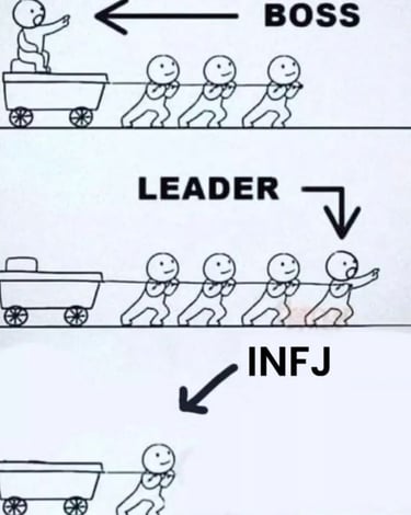 Với bản tính ý thức rất cao về trách nhiệm và đam mê cống hiến cho tập thể, INFJ có thể gồng gánh gánh vác công việc nhiều hơn nhiều lần người khác