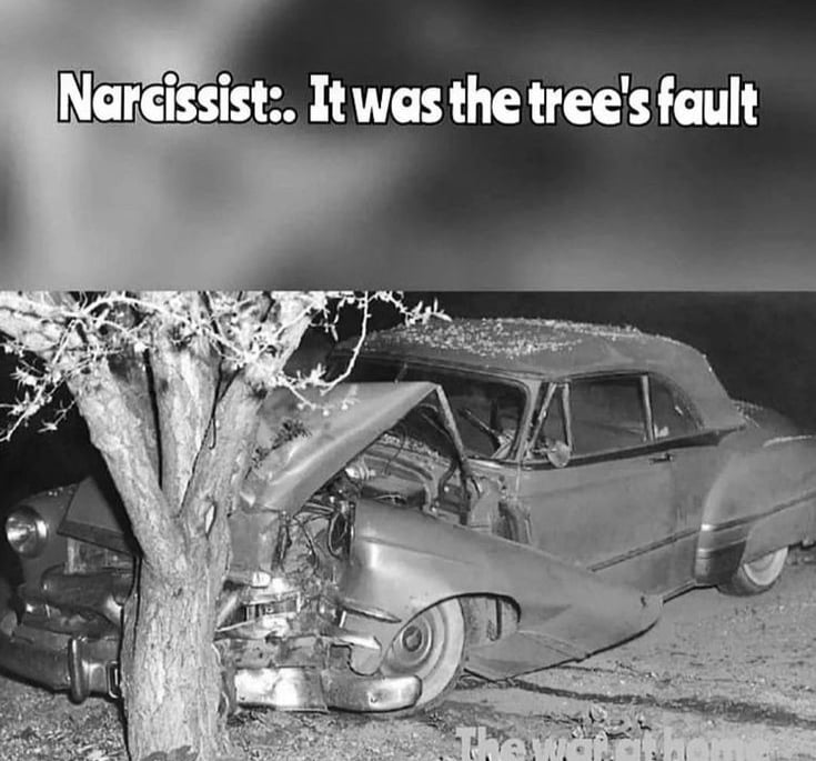 Khi ái kỷ đâm xe vào gốc cây thì lỗi là ở cái cây :3