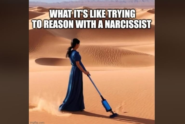Vì nhiều người không hiểu về sự độc ác của Ái kỷ, nên khi tao giải thích về con người yêu cũ ái kỷ của tao cho mọi người thì tao trông như thế này...