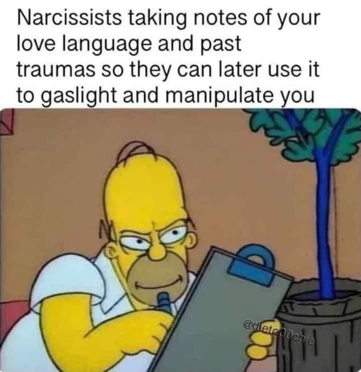 Ái kỷ ghi chép lại ngôn ngữ tình yêu và chấn thương tâm lý quá khứ của mấy ní để tiện thể sau này còn đem ra thao túng mấy ní
