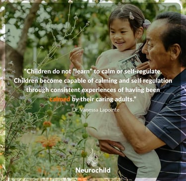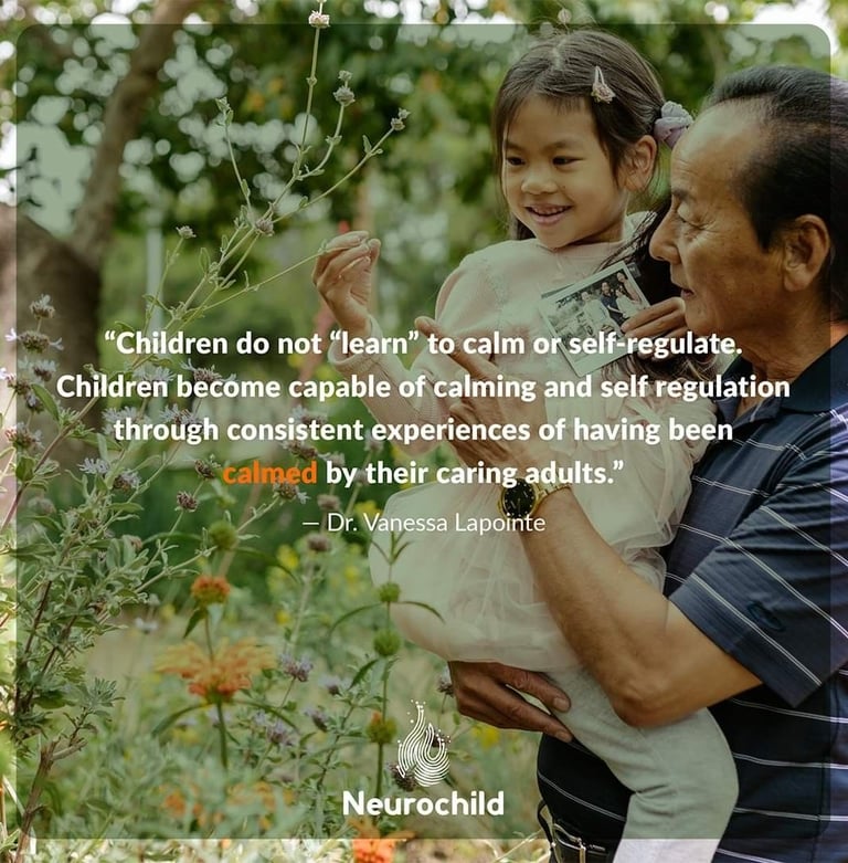 "Trẻ con không "học" cách bình tĩnh và tự kiểm soát bản thân. Trẻ con trở nên bình tĩnh và sự kiểm soát bản thân thông qua liên tục trải nghiệm được người lớn trìu mến xoa dịu, giúp chúng bình tĩnh"