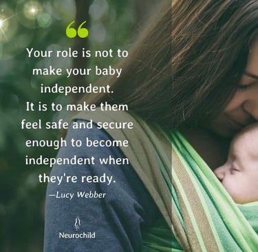 "Trách nhiệm của bạn không phải là khiến cho em bé độc lập. Mà trách nhiệm của bạn là cho em bé cảm giác an toàn đầy đủ để bé có thể trở thành một cá nhân độc lập khi bé sẵn sàng cho điều này."