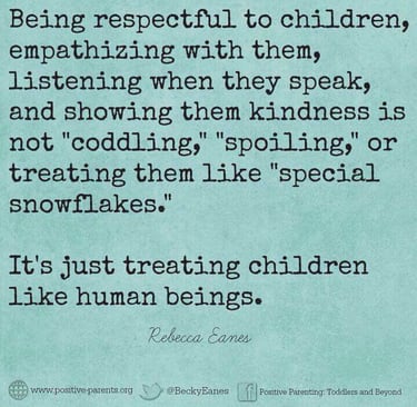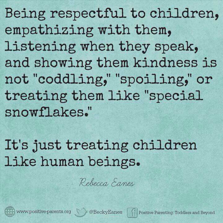 Tôn trọng trẻ, đồng cảm với trẻ, lắng nghe trẻ nói, và biểu hiện lòng tốt với trẻ không phải là "nuông chiều", "làm hư" hay là "đối xử với chúng mong manh như bông tuyết".