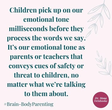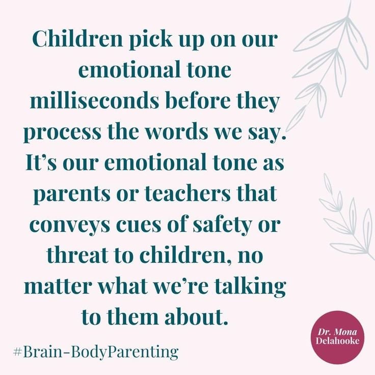 Trẻ con nhận bắt lấy những dấu hiệu cảm xúc của chúng ta phần nghìn giây trước khi bộ não chúng xử lý những từ ngữ chúng ta nói. Dấu hiệu cảm xúc của chúng với vai trò là giáo viên hay cha mẹ mang những chỉ báo là an toàn hay là đe doạ đối với trẻ, bất kể điều chúng ta định nói với trẻ là gì.