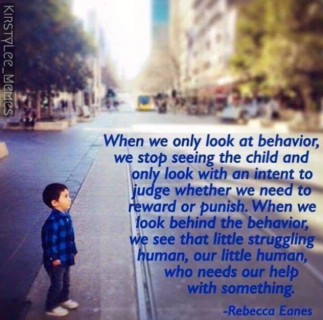 Khi chúng ta chỉ nhìn vào hành vi của trẻ con, chúng ta ngưng nhìn nhận thật sự đứa trẻ và chỉ nhìn ở bề ngoài với ý định phán xét xem nên thưởng hay phạt chúng. Khi chúng ta nhìn sâu xa hơn đằng sau hành vi, thì sẽ thấy con người bé nhỏ đang vật vã đó cần sự giúp đỡ của chúng ta.