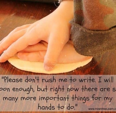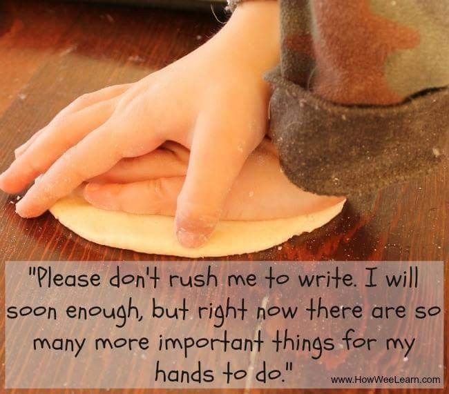 "Xin đừng hối con tập viết sớm. Con sẽ sớm tập viết khi đủ tuổi thôi, nhưng hiện giờ có nhiều thứ quan trọng hơn cho đôi tay con làm."