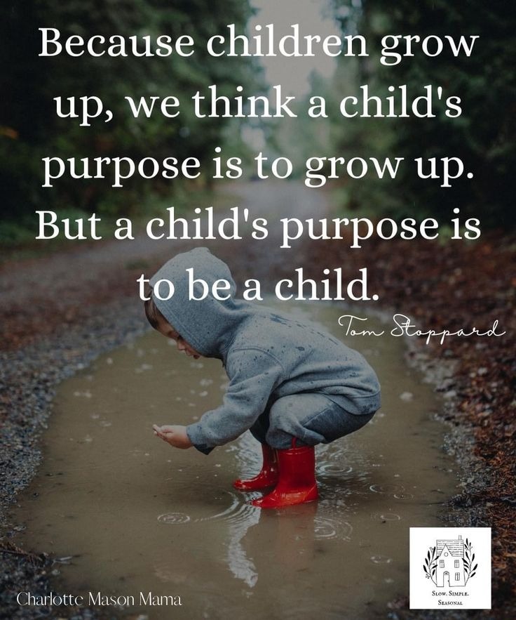 Vì trẻ con lớn lên, chúng ta nghĩ rằng mục đích của trẻ con là phải trưởng thành.